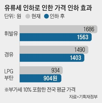 유류세가 인하되면, 휘발유의 경우 약 123원, 경유의 경우 약 87원 정도 리터 당 휘발유 가격이 인하될 것으로 보입니다.